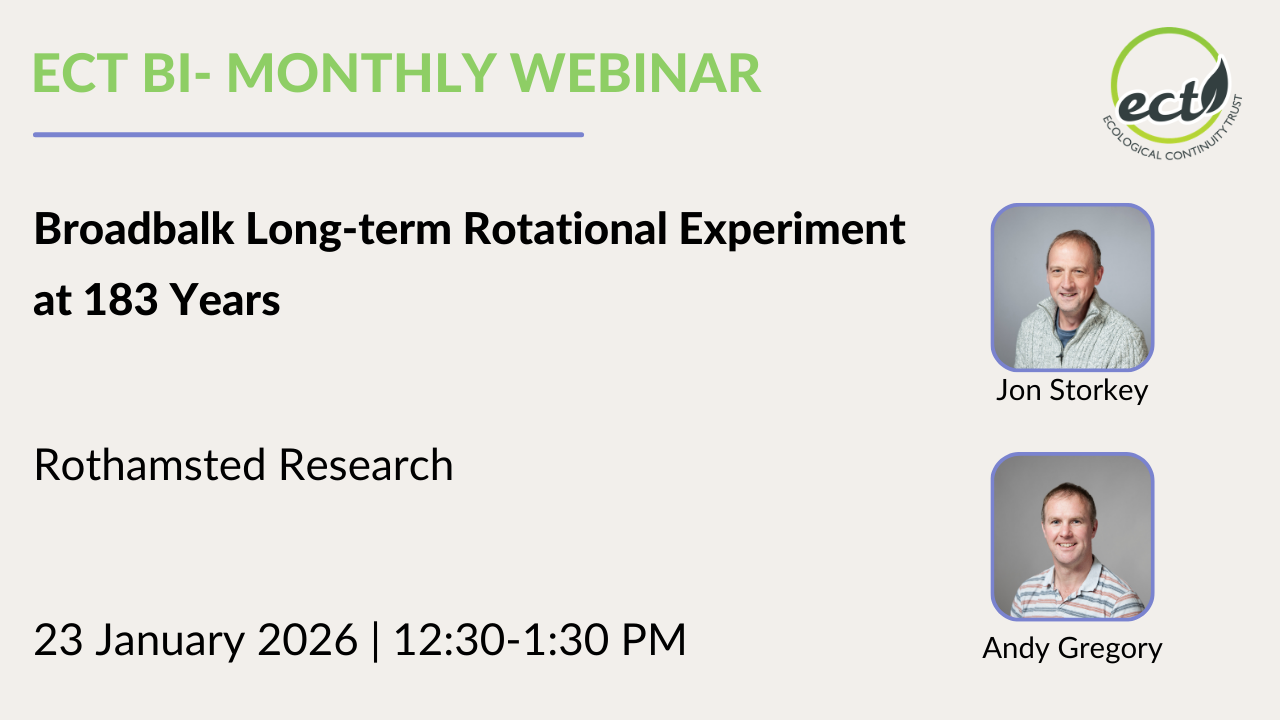 ECT launched its webinar series in January 2019, initially as a means of bringing together the members of our LTE User Group for discussion about science emerging from the long-term field experiments on ECT’s national register. We have now opened our webinars to a wider audience.